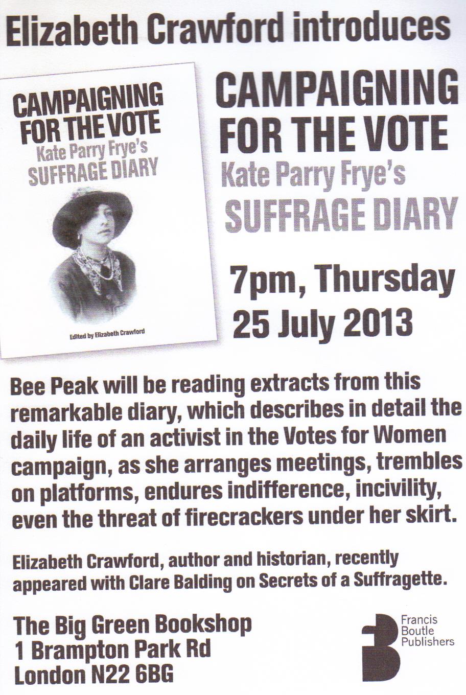 Campaigning for the Vote: Kate Parry Frye’s Suffrage Diary is published by Francis Boutle Publishers