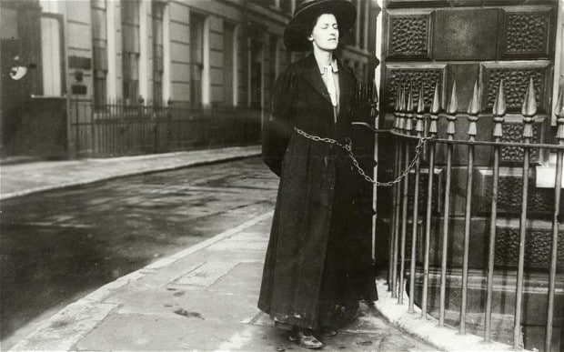 A suffragette, a chain, railings. What does it mean?