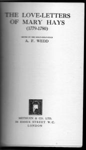 The Love-Letters of Mary Hays (1779-1780), edited by her great-great-niece A.F. Wedd, Methuen 1925.