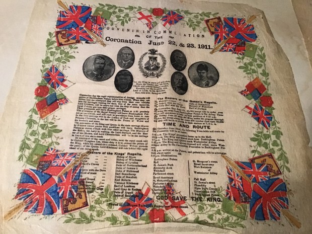 For, of course it was not just suffrage events that were commemorated by “Auntie” in her tissue napkins, but coronations, visits from foreign statesmen, the opening of Parliament etc etc. It is clear that, to mark a new event, the souvenir tissues could be issued very quickly. I will have several of these (non-suffrage) tissues for sale in my forthcoming catalogue.