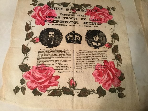 Tissue napkin commemorating the inspection by the King Emperor of Dominion troops, August 1919 £30