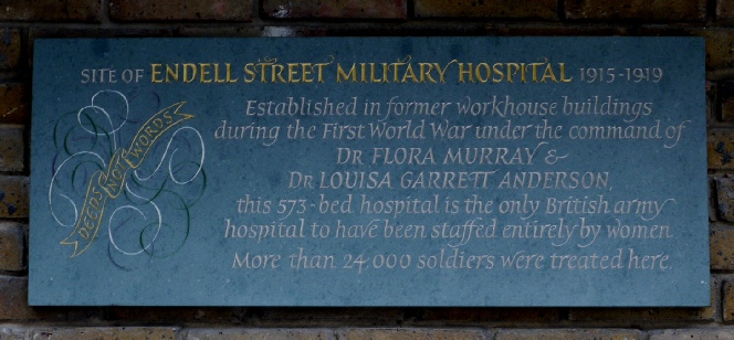 Plaque commemorating the Endell Street Military Hospital (photo courtesy of Plaques of London website)