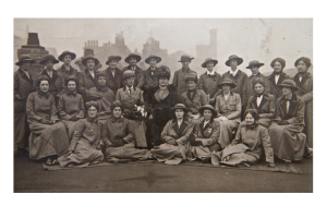 Girton and Newnham Unit of the Scottish Women’s Hospitals about to embark on board ship at Liverpool, October 1915. Photo courtesy of Royal College of Physicians and Surgeons of Glasgow Archive