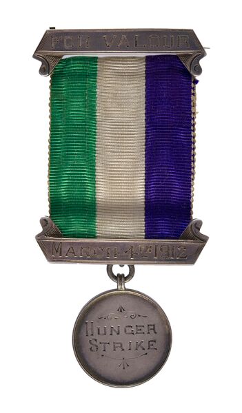Here, too, you can see Gertrude Lowy’s hunger-strike medal. She was imprisoned after taking part in the March 1912 window-smashing raid.