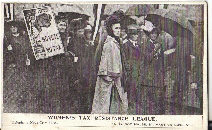 Mary Sargent Florence was a leading light of the Tax Resistance League, designing their badge and banner, and in 1912 and 1914, putting principle into practice, refused to pay her taxes, and had goods distrained and sold.