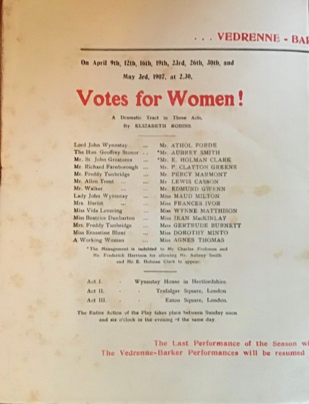 Collecting Suffrage: 1907 Programme For ‘Votes for Women’, Play By Elizabeth Robins