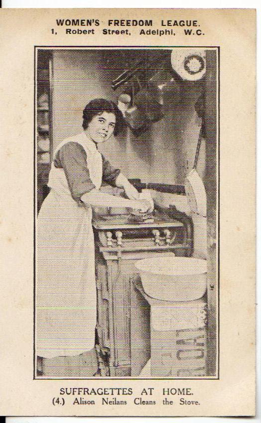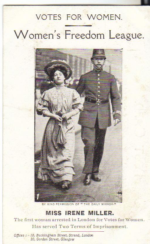 The photograph of Mrs Hicks on this official Women’s Freedom League postcard was taken by Lena Connell and probably issued around 1909/10.
