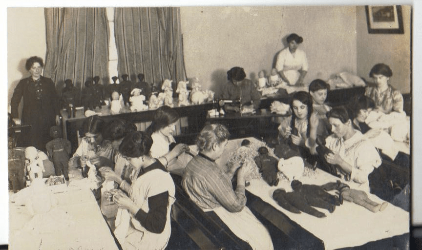 The photographer and publisher of the resultant postcard was Mrs Albert Broom (Christina Broom), who photographed several groups of those participating in that WFL Fair.