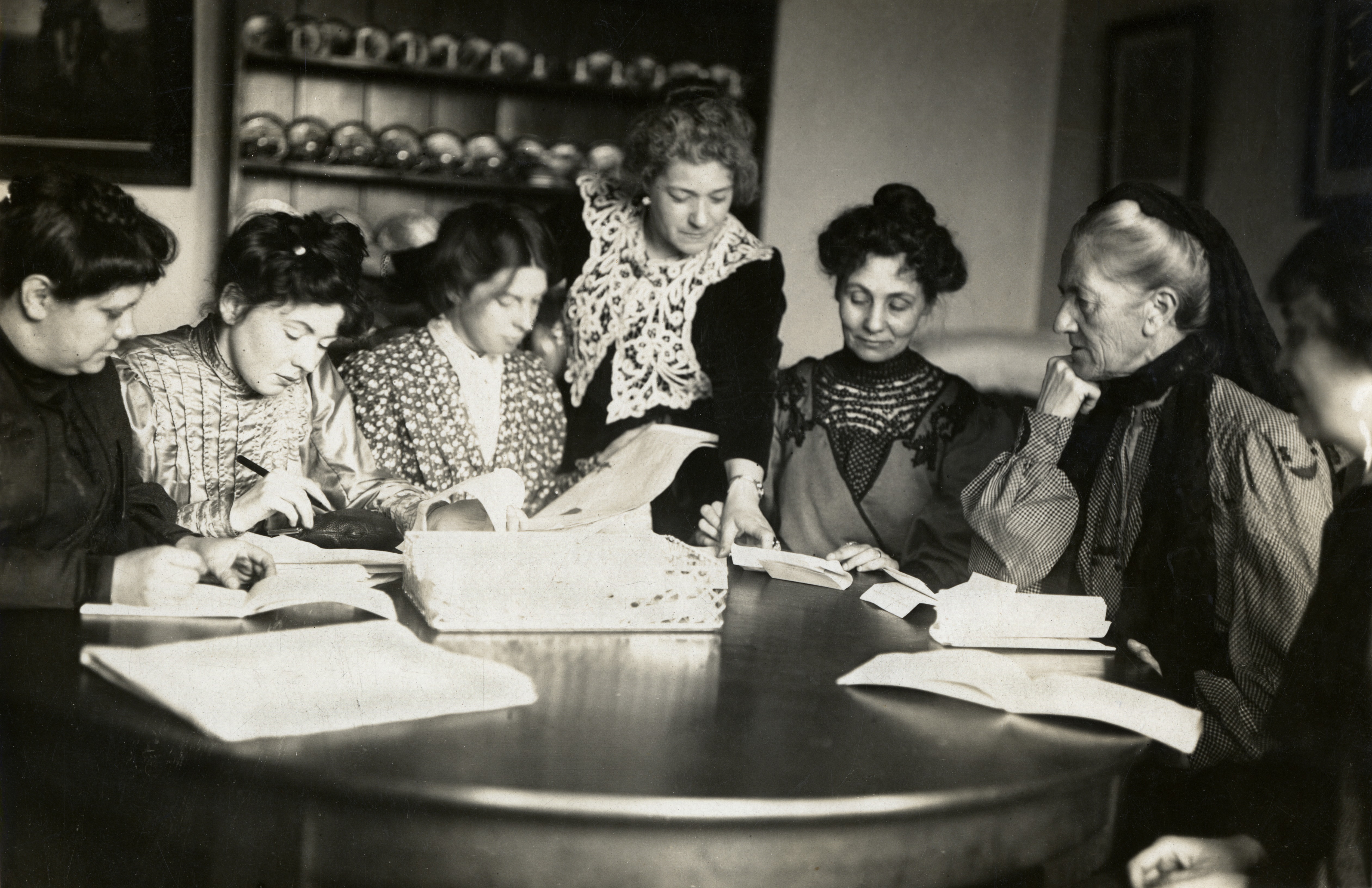 This photograph of Mrs Emmeline Pankhurst probably dates from c 1907, taken at her desk in Clement’s Inn, headquarters of the Women’s Social and Political Union.