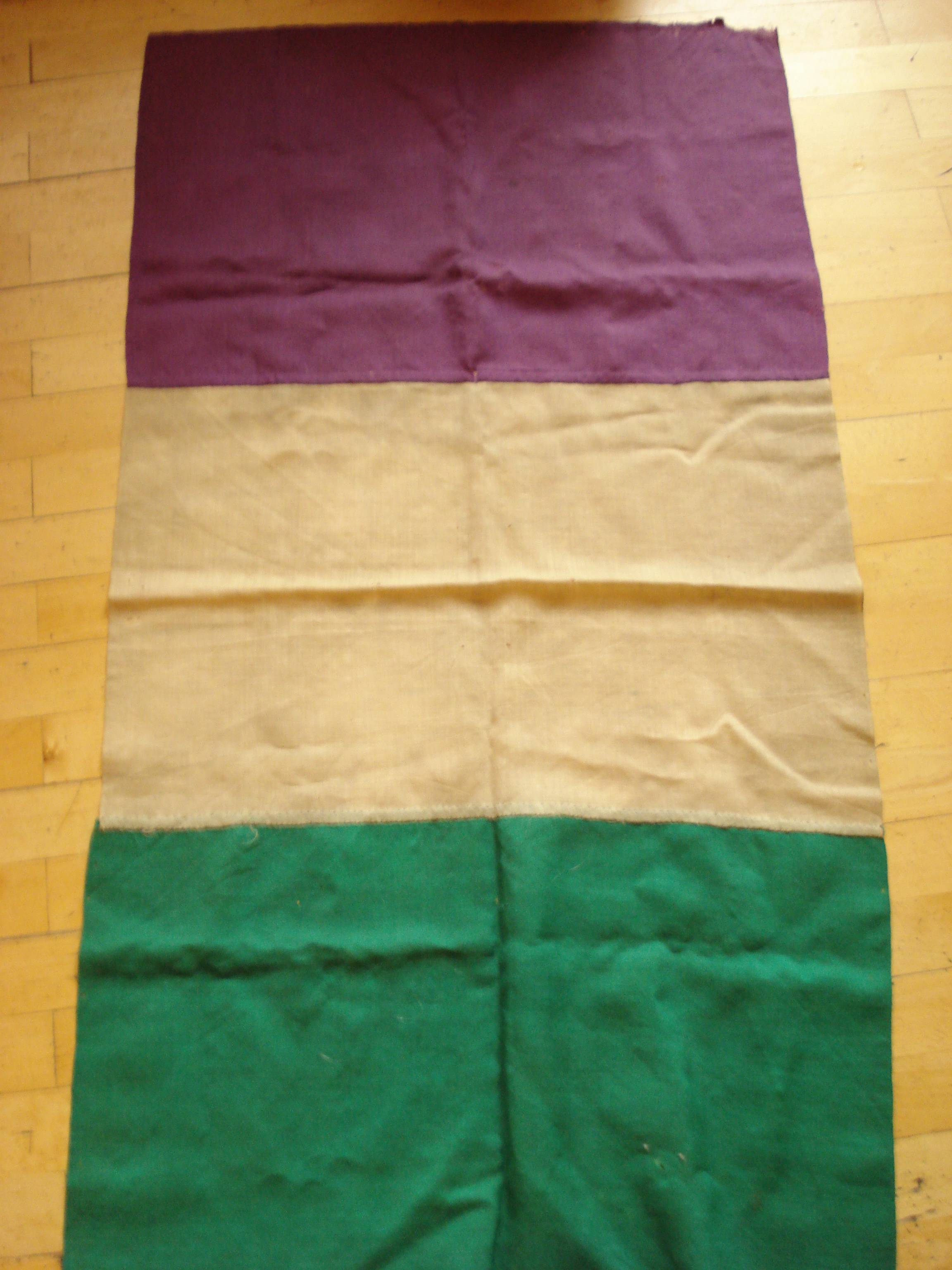 It may be useful to present the history of one element of suffragette material culture that currently concerns me: the phenomenon of the WSPU flag currently flooding the market.