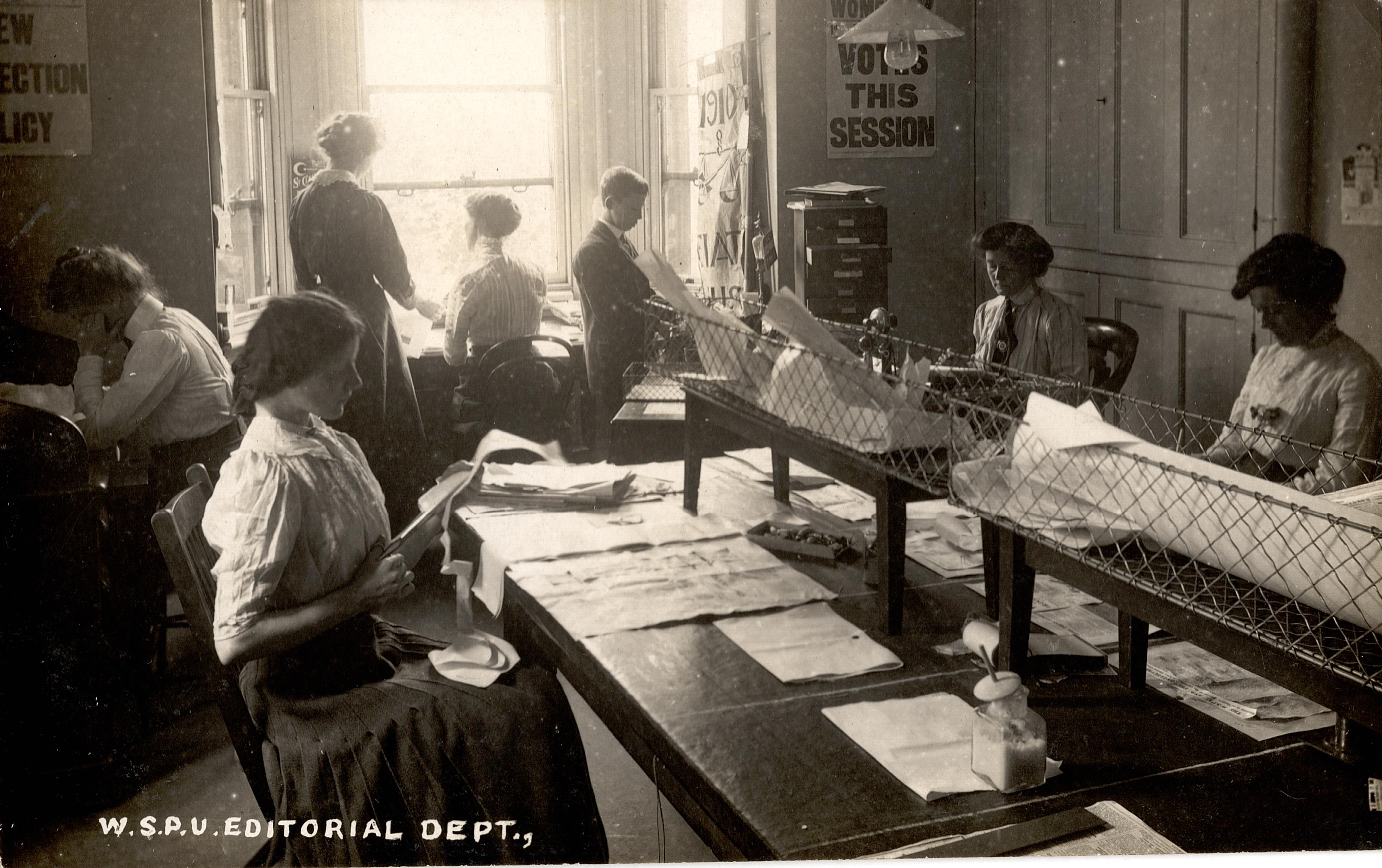 The photograph comes from the collection of Isabel Seymour, who was an early WSPU supporter working in the WSPU office.
